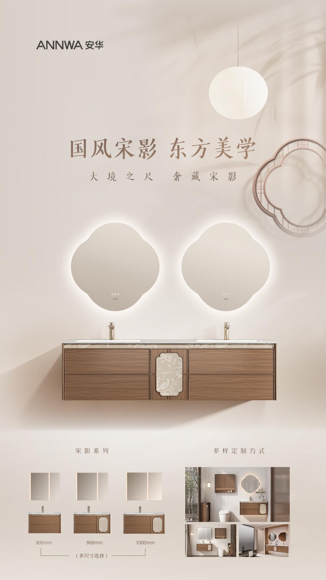 宋影系列浴室柜汲取宋式美学精髓,密苏里黑胡桃木纹呈现可触摸的自然与松弛感,甄选行业领先的E0级环保抗菌板材,从材质源头守护家居健康,为追求品质与精神栖居的都市人群,打造一方兼具东方雅韵与从容秩序的空间。