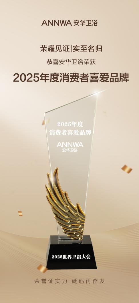 双奖加冕,实力登榜 引领行业标杆力量 本届大会,安华卫浴凭借卓越的品牌综合实力、持续的产品创新能力与深厚的市场口碑,一举斩获 “影响力品牌” 与 “2025 年度消费者喜爱品牌” 两项重磅荣誉。双重权威认可,不仅印证了安华卫浴的强劲发展势能,更巩固了品牌持续引领行业未来的标杆地位。